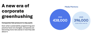 An analysis of online mentions of hundreds of common terms used in sustainability and impact narratives dropped from 438,000 in 2024 to 396,000 in 2025. The declines in earned media across broadcast, print and online was also seen in corporate-issued updates, according to 3BL’s analysis.